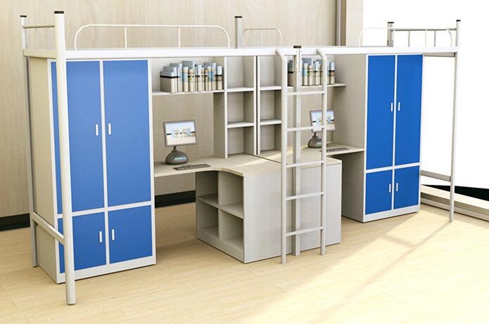 公寓床立柱采用40*40或50*50方管,也可以選用型鋼棺材。厚度1.2mm,橫桿采用25*25方管,厚度1.2mm,橫梁采用30*30方管,厚度1.2mm,中間有拉桿4根25*25,厚度1.2mm,訂檔5條,床下內側有一根橫梁連接,材料30*50,厚度1.2mm,配有防護欄。 所有連接件采用螺絲連接,床架采用優質碳鋼制作床架結構穩固,鐵件部分焊接用二氧化碳保護焊、鋼管表面經過除油、除銹、磷化、靜電噴塑、高溫固化而成,不易變形、承壓力好。
